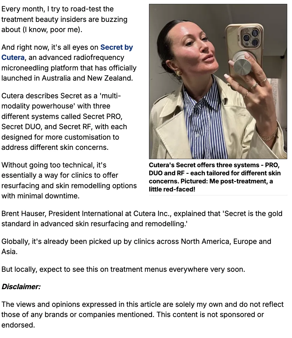 We’re excited to share that Secret™ by Cutera has been featured in the Daily Mail Australia, one of the country’s most widely read digital publications, reaching over six million readers every month.